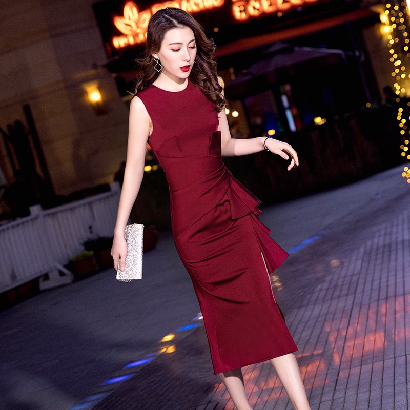 Elegant Evening Dress Wine Red Fishtail Dress Wedding Toast Dress Temperament Slim Dark Green Dress Piano Performance Dress Host Cocktail Dress Party Dress Annual Meeting Dress Shopee Malaysia